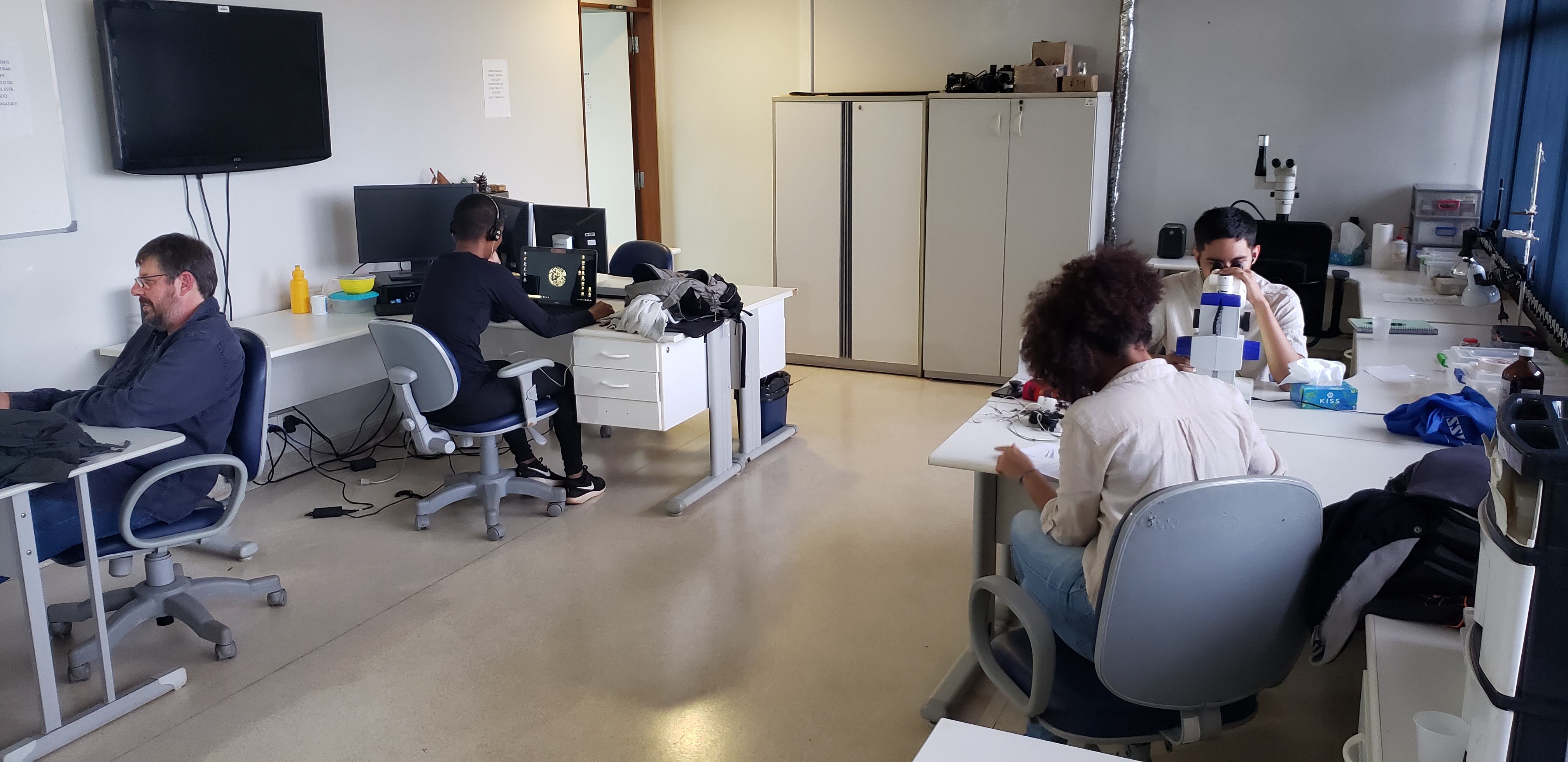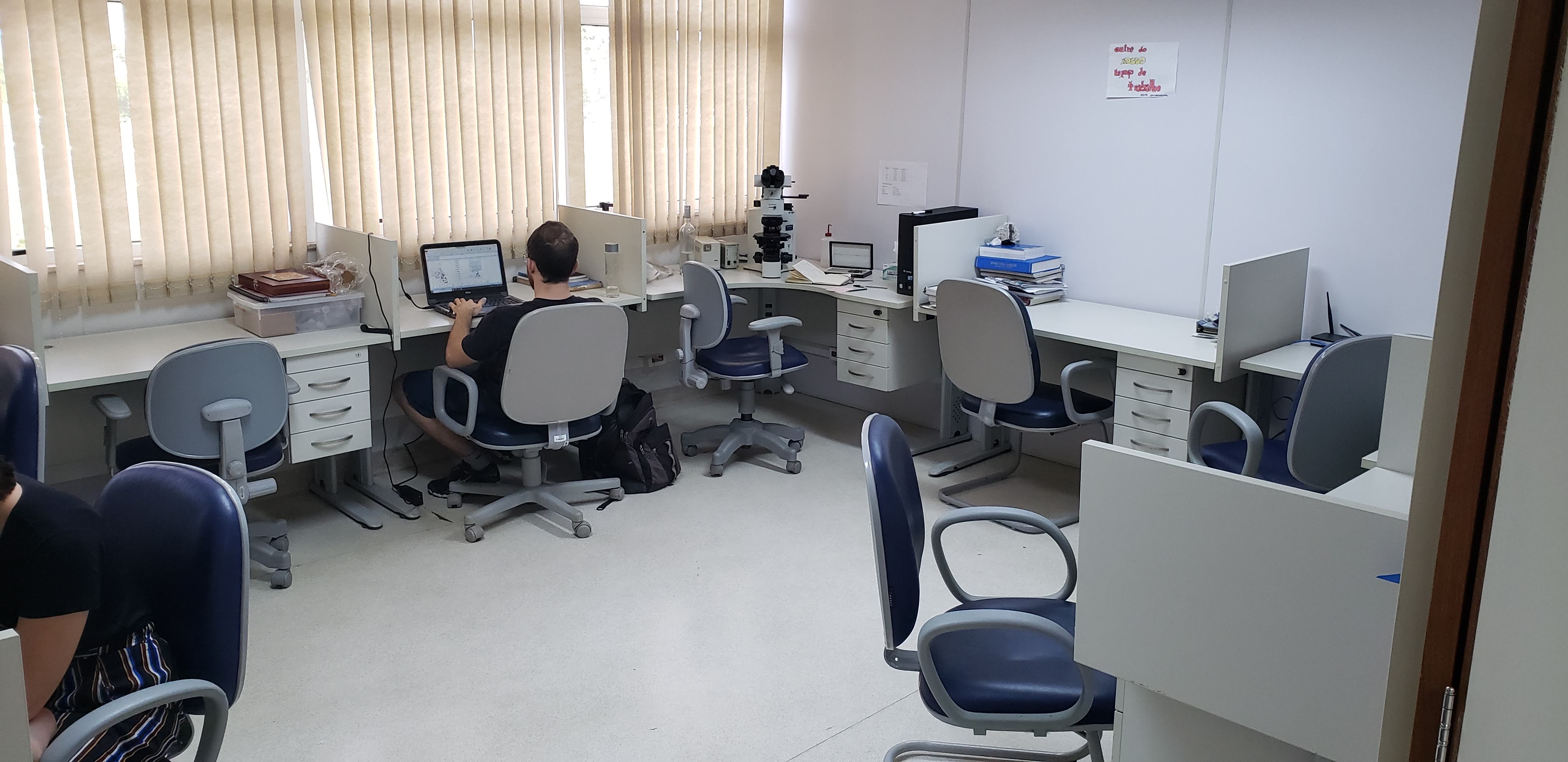 Salas de pesquisadores, alunos de pós-graduação e técnicos